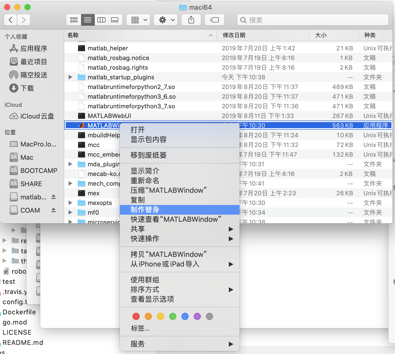 14.制作替身,复制到桌面,启动文件所在目录/Applications/Polyspace/r2019b/bin/maci64/MATLABWindow