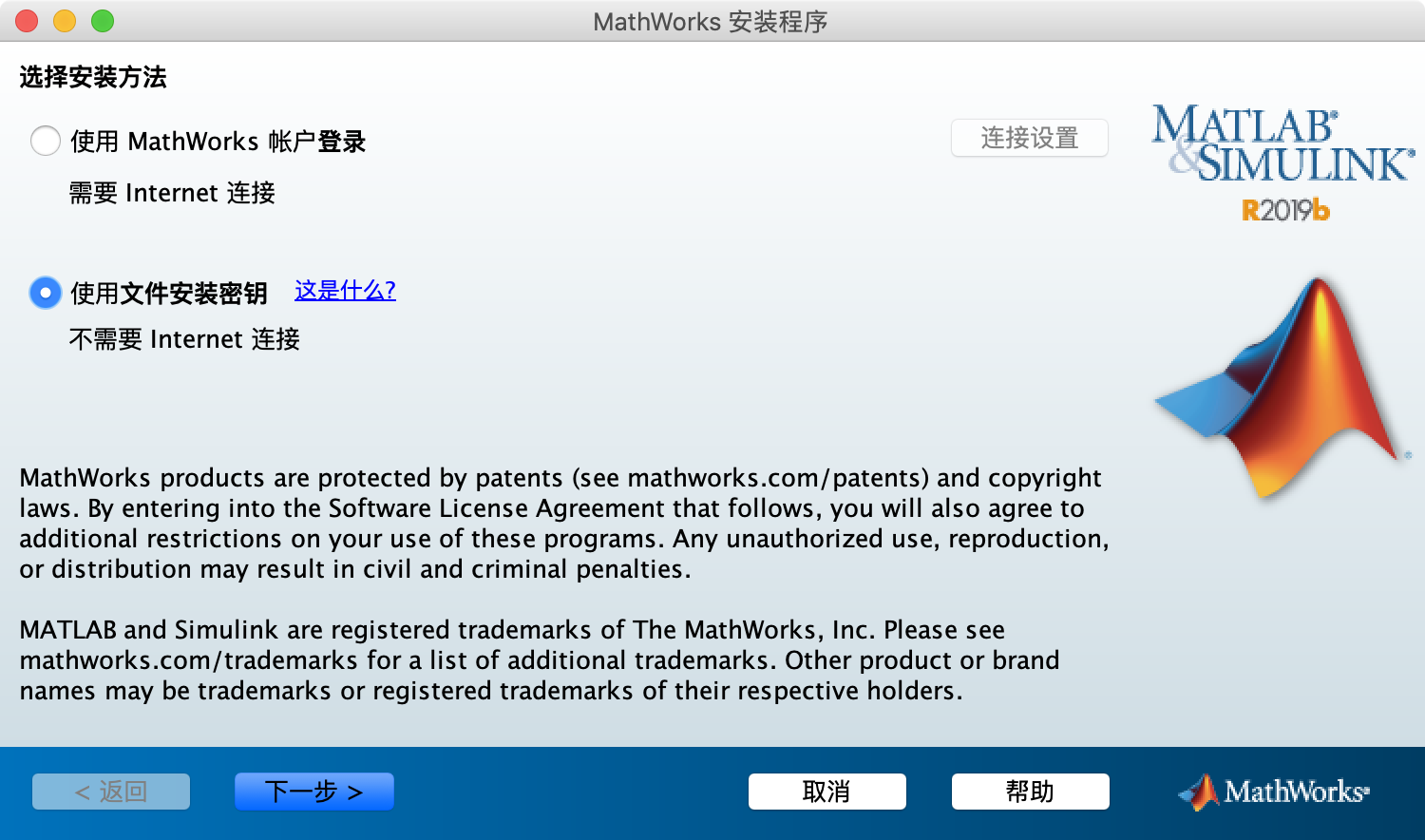 2.选择安装方法;选择第二项,使用文件密钥,不需要Internet